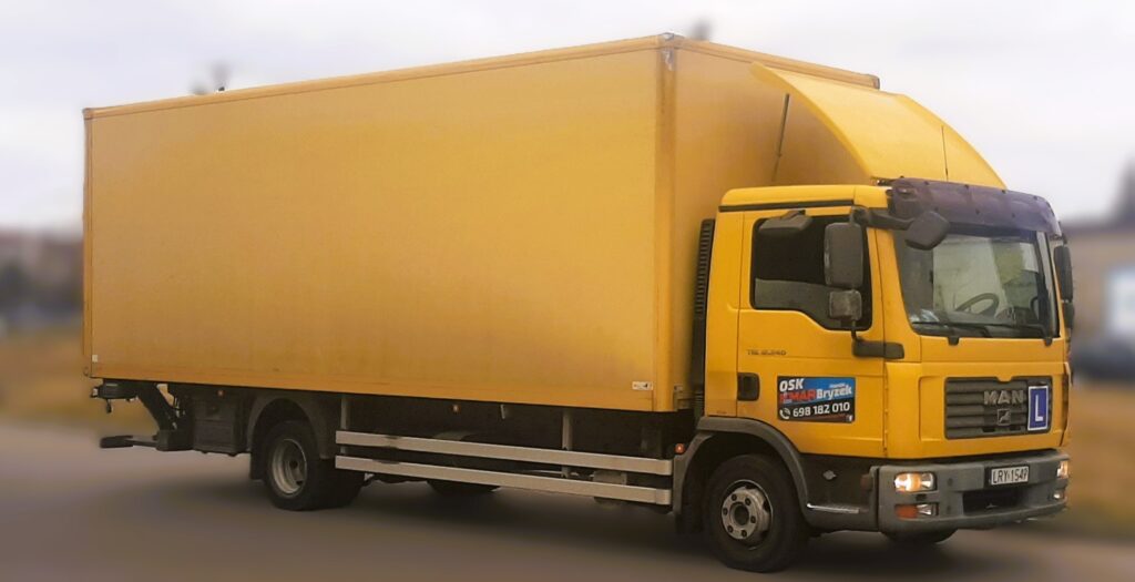 - praktykę: 30 godzin zegarowych (60 minut każda) – jazdy odbywają się na samochodzie MAN TGL 12.240